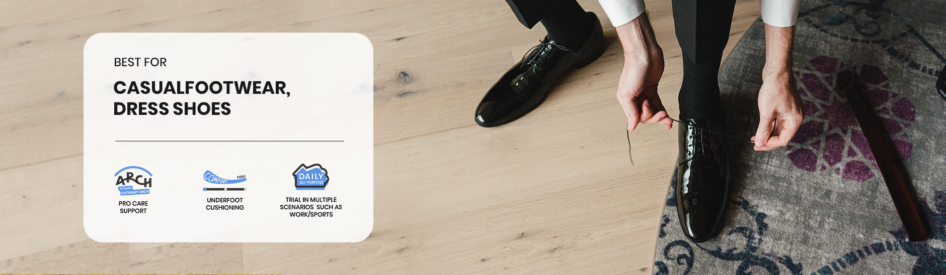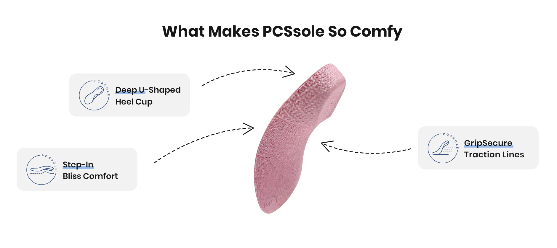 PCSsole Casual Pain Relief insoles are the top choice for millions of people experiencing plantar fasciitis pain, heel pain and even ankle and knee strain. These premium pain relief orthotics are not only great plantar fasciitis inserts, but a superior overall choice to help alleviate many types of foot conditions.