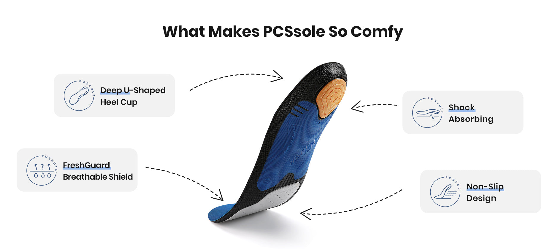 PCSsole Casual Pain Relief insoles are the top choice for millions of people experiencing plantar fasciitis pain, heel pain and even ankle and knee strain. These premium pain relief orthotics are not only great plantar fasciitis inserts, but a superior overall choice to help alleviate many types of foot conditions.